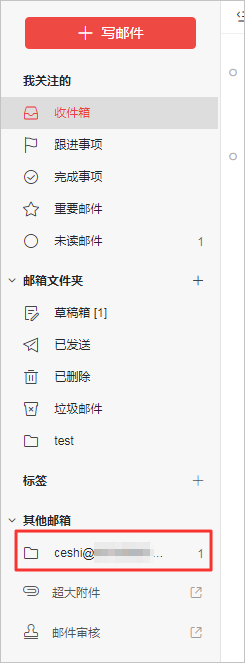 5、设置成功的代收邮箱,将会在首页左侧功能栏的其他邮箱中展现。