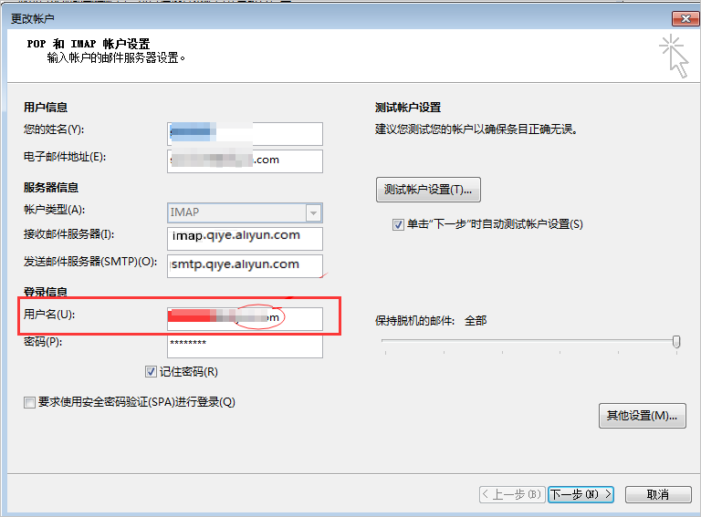 在Outlook和Foxmail中配置阿里邮箱时提示密码错误
