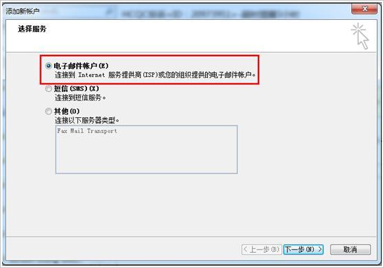 2、选择电子邮件账户,并单击下一步。