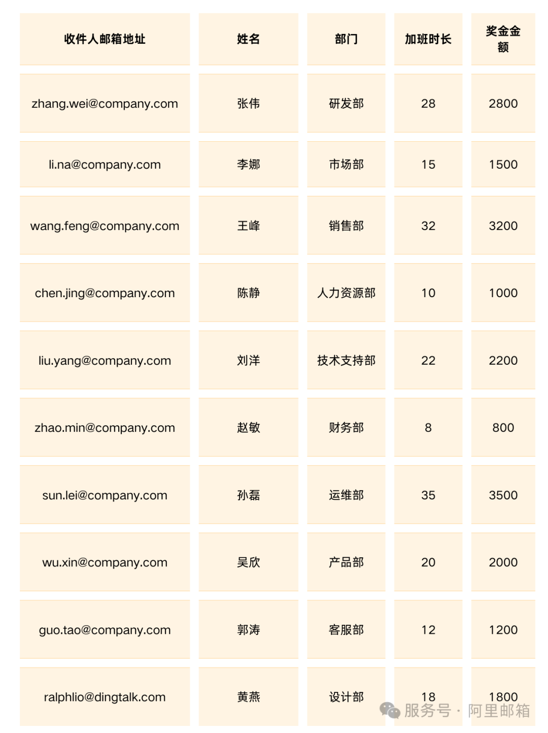 发送工资条 :HR王姐需要给500名员工发工资单,每个人的基本工资、奖金、个税扣除项都不一样,需要逐个发送。